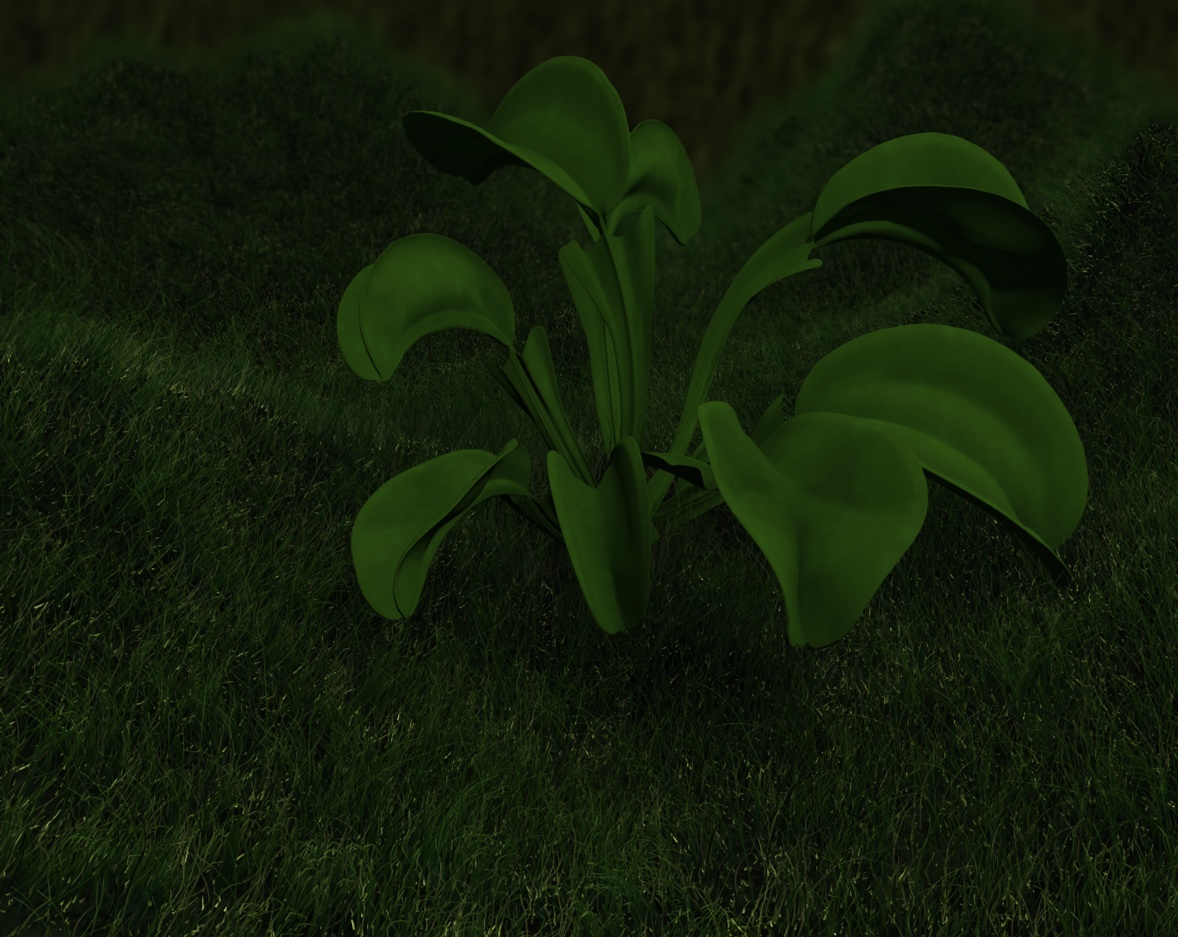 Das Gras sieht super aus, und auch die Pflanze ist gut gemodelt, nur das Material der Blätter finde ich etwas wischiwaschi, da mußt Du nochmal ran.