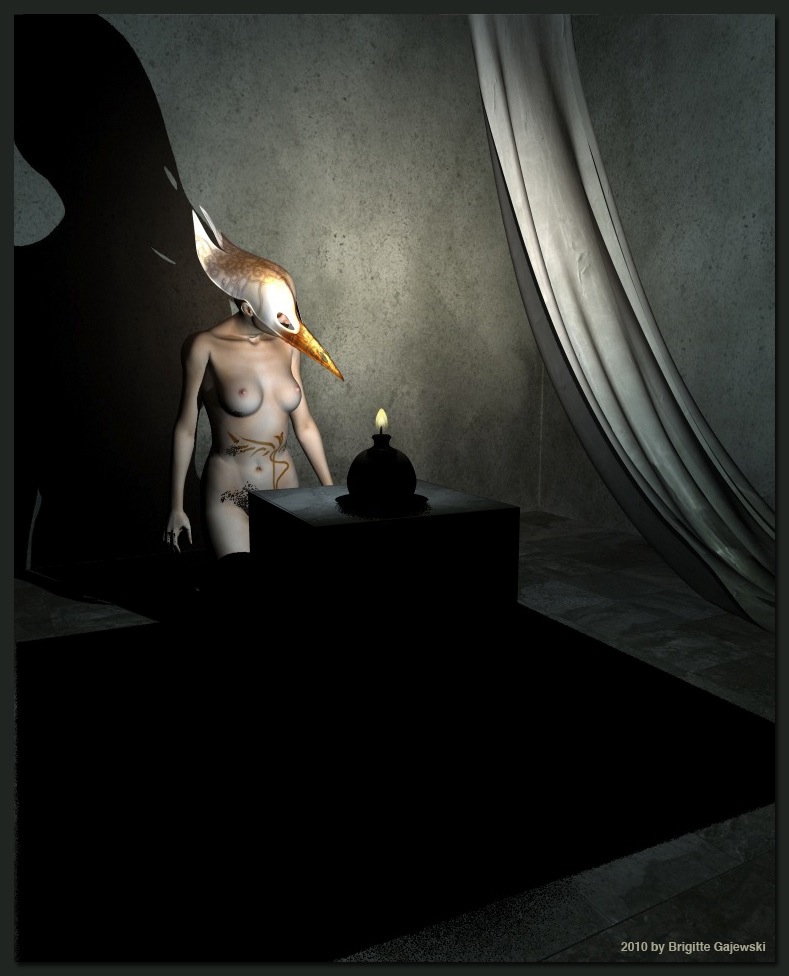 ansich ein gutes bild, nur die grossen schwarzen flächen wirken als schatten sehr unnatürlich, da das bild von einer kerze beleuchtet wird