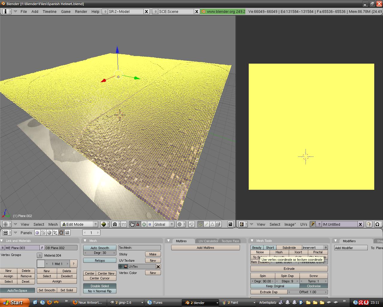 -Im Edit Mode klick man jetzt auf Noise (dadurch werden Höhen und Tiefen von der Textur auf die Punkte übertragen) und dann auf Set Smooth