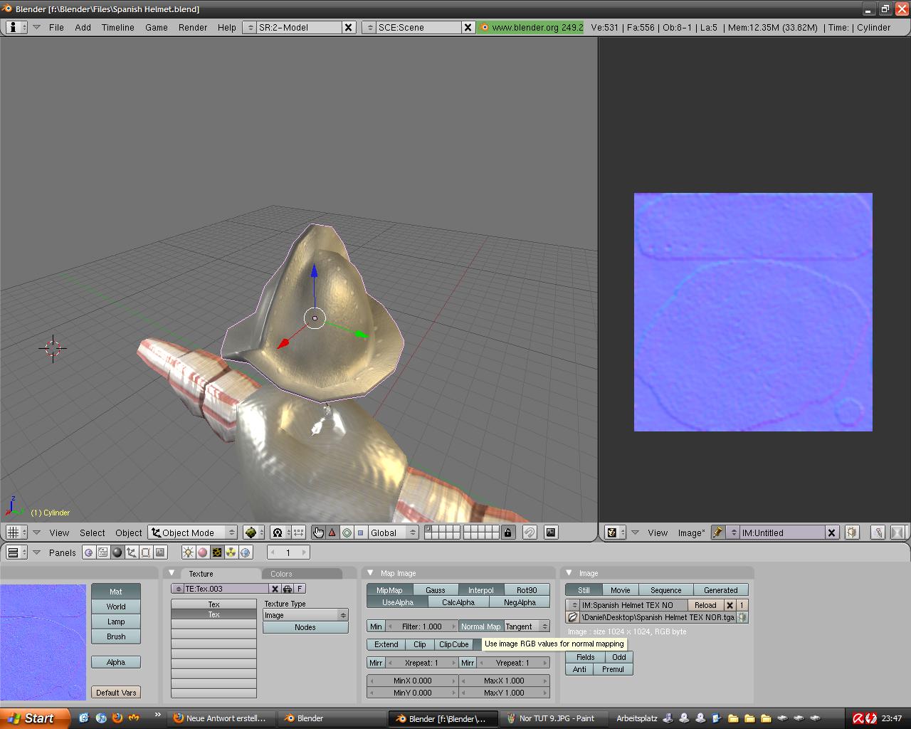 -Dem Objekt wir jetzt diese Map zugewiesen.Es gibt noch die Möglichkeit Objekte direkt zu "backen": http://www.youtube.com/watch?v=u9Lx7EsEzqs