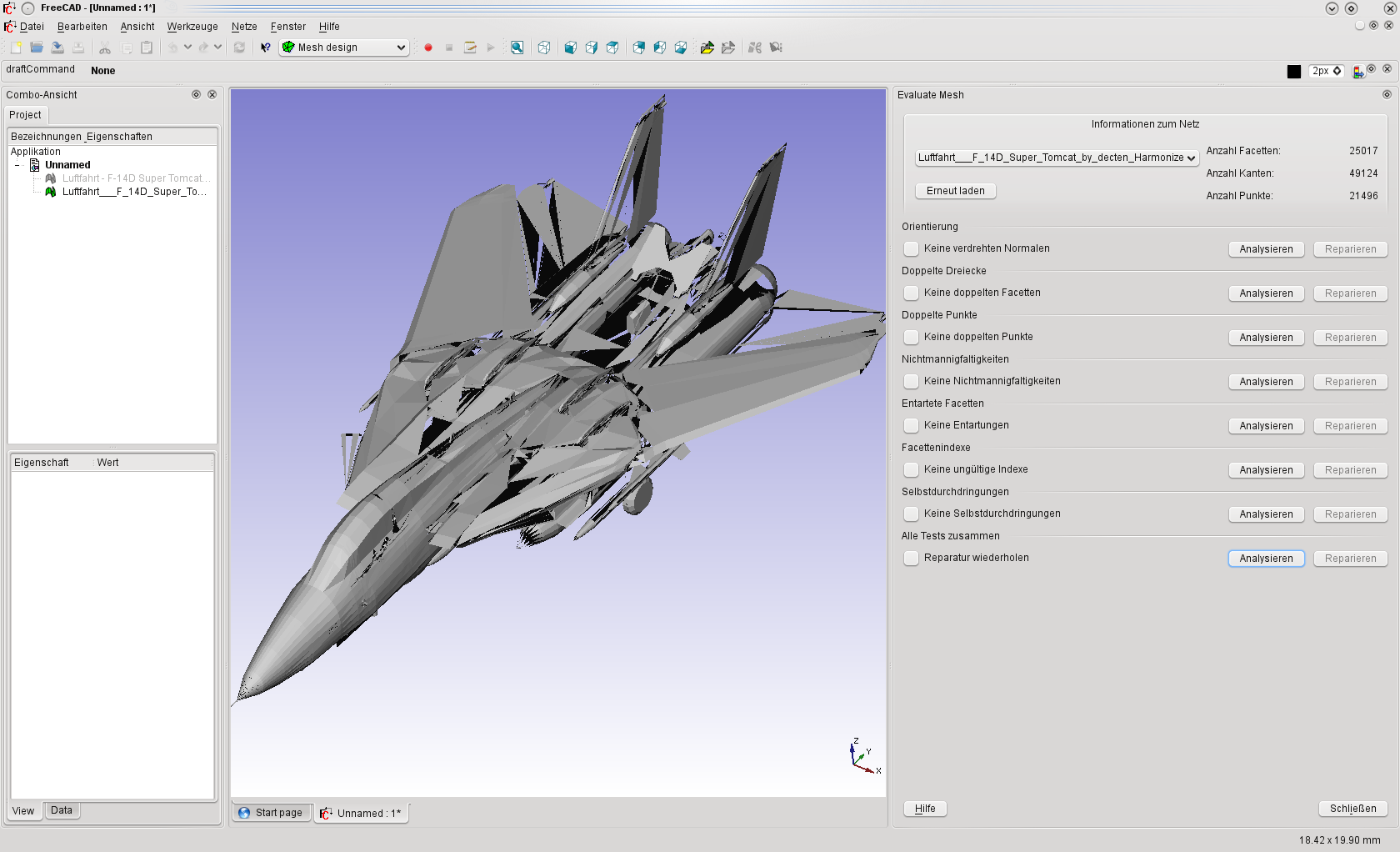 FreeCAD ist in der Lage Meshes zu analysieren und Fehler zu beheben. Leider sind einige Mesh von Sketchup so beschädigt das es nicht geht. Ich habe hier mal im Bild alle fehlerhaften Flächen gelöscht. Meine Idee ist es die Form des Originals zu nehmen und ein neues drauf zu ziehen, retopologie eben. Wäre schön wenn das fast automatisch ginge.