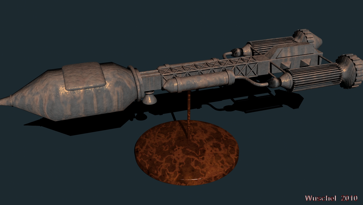 Vom Modelling her sehr gelungen. Es ist etwas zuviel Rost an einem Raumschiff, das fast nur im Vakuum unterwegs ist.