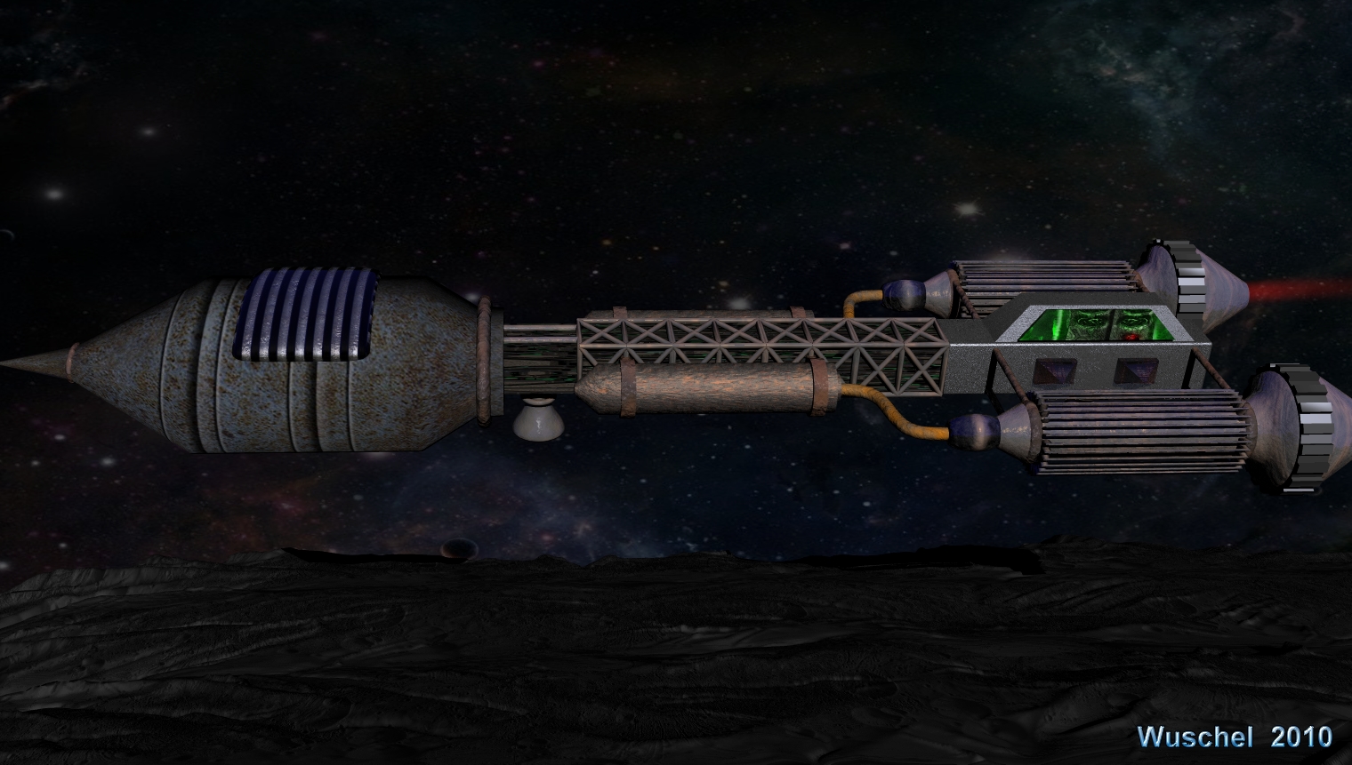 Vom Modelling her sehr gelungen. Es ist etwas zuviel Rost an einem Raumschiff, das fast nur im Vakuum unterwegs ist.