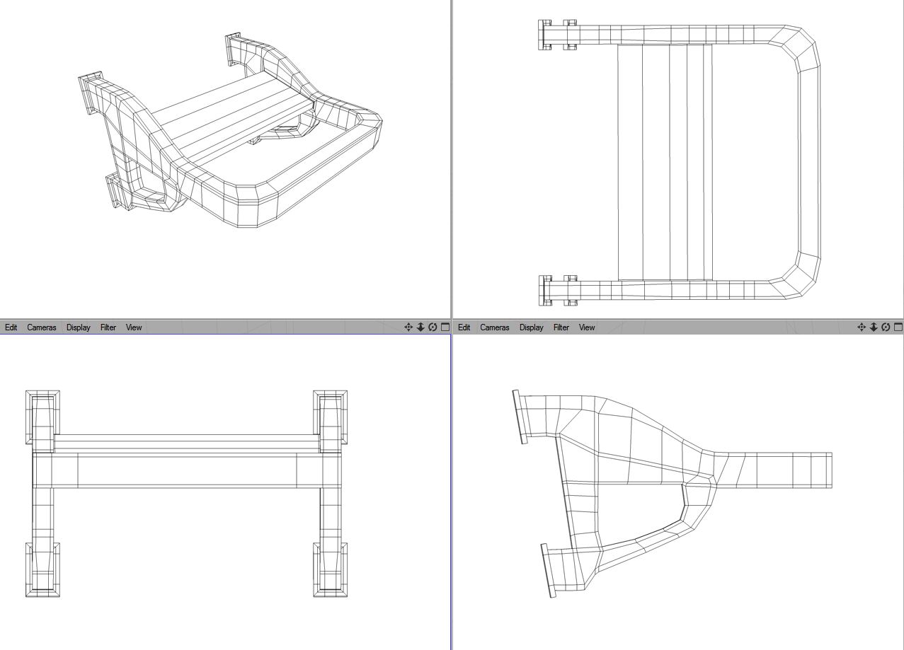 Die ersten Screenshots zeigen den Hauptkörper, noch ohne Details, und ein seitliches Detail, das eigentlich erst am Ende des Projekts hinzugefügt wurde.