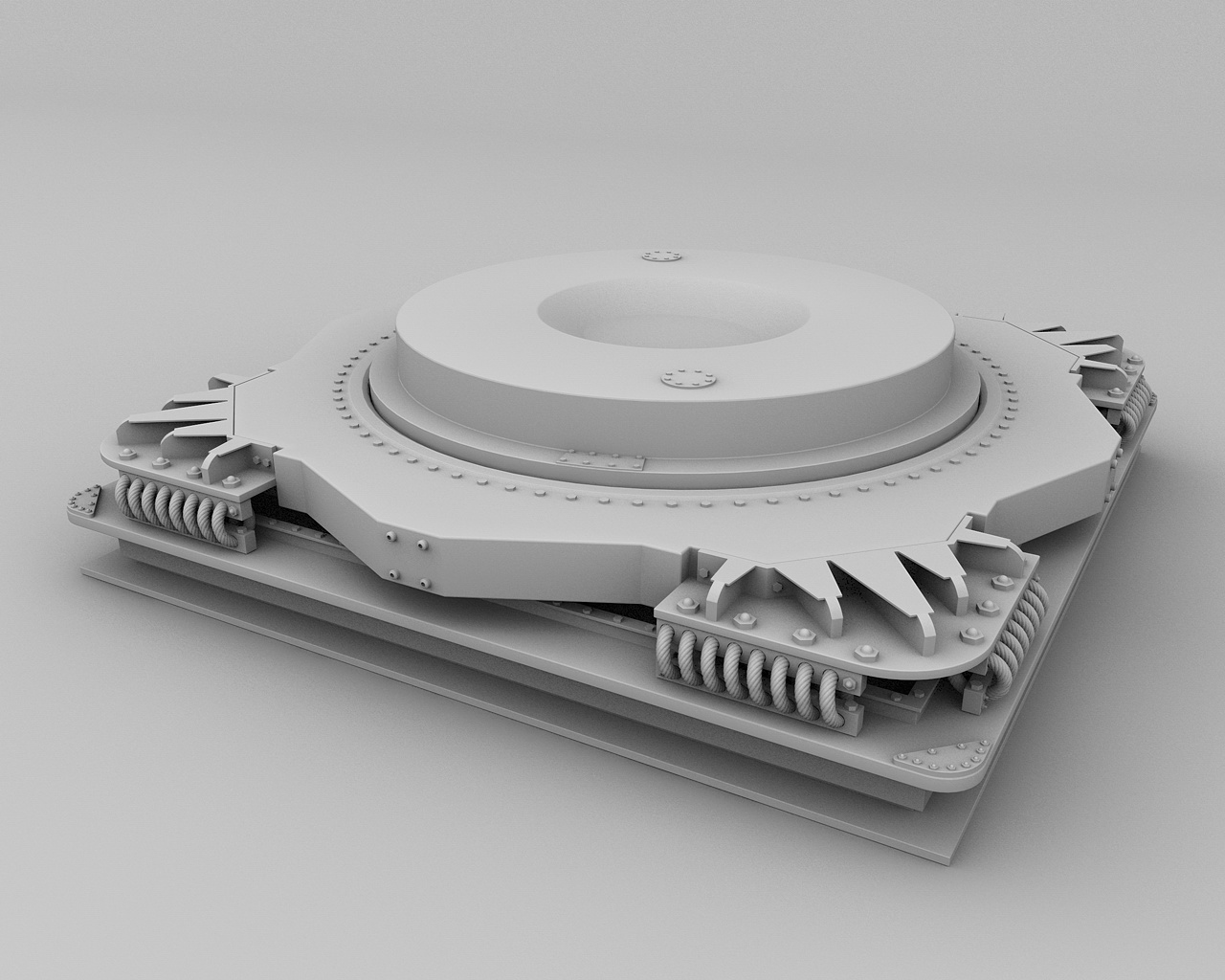 Das Modell ist soweit schon fertig und ich hab's auch schon in die Gallerie gestellt. Letztlich wirkt es meiner Ansicht nach auch hauptsächlich als Gesamtobjekt, deswegen ist ein ausführlicheres WIP eher uninteressant. Die am meisten verwendeten Objekte waren Bolzen und Schrauben...