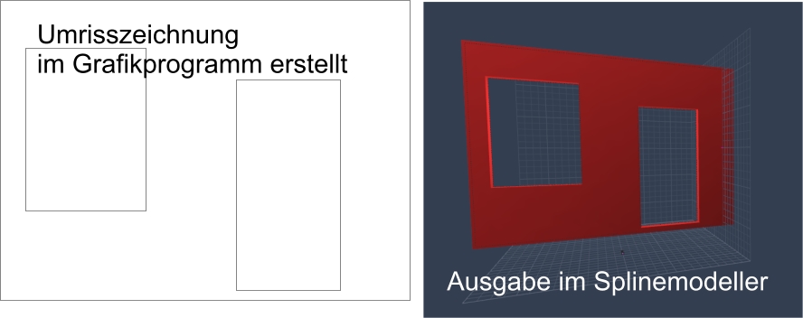 Dann wäre ja auch noch die Möglichkeit mit dem Splinemodellierer, wo du in deinem Grafikprogramm von einer Wand inklusive aller Öffnungen eine Umrisszeichnung machst und diese als ai*eps Datei in den Spline Modeller importierst.