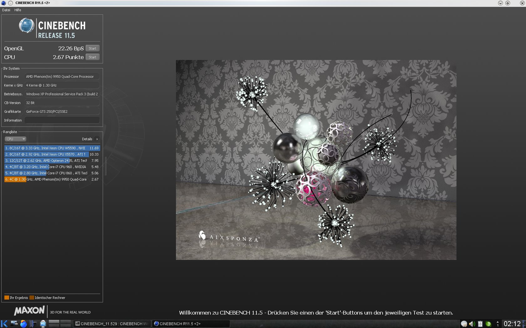 Dass C4D (warscheinlich unter wine) mehr Punkte im Benchmark bringt, glaube ich irgendwie nicht :/