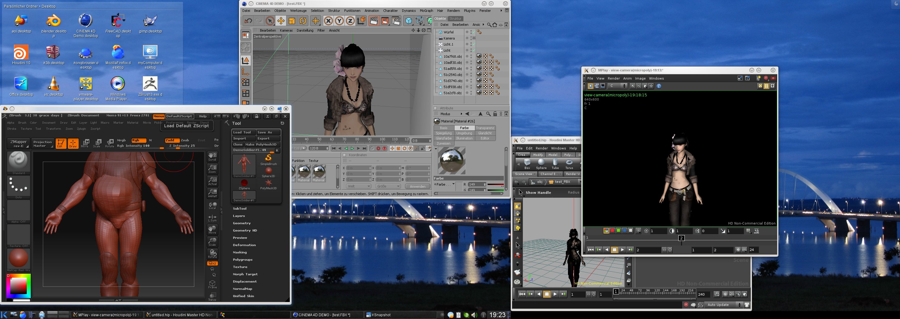 C4D 10 -11.5 alle Versionen und Modulle benutzbar, ein Cinebench brachte unter Linux + 80 Punkte.