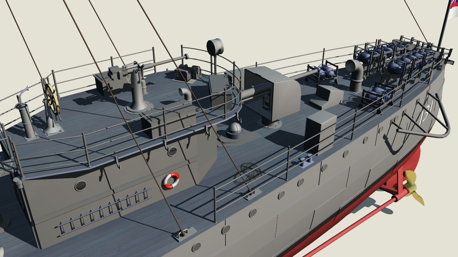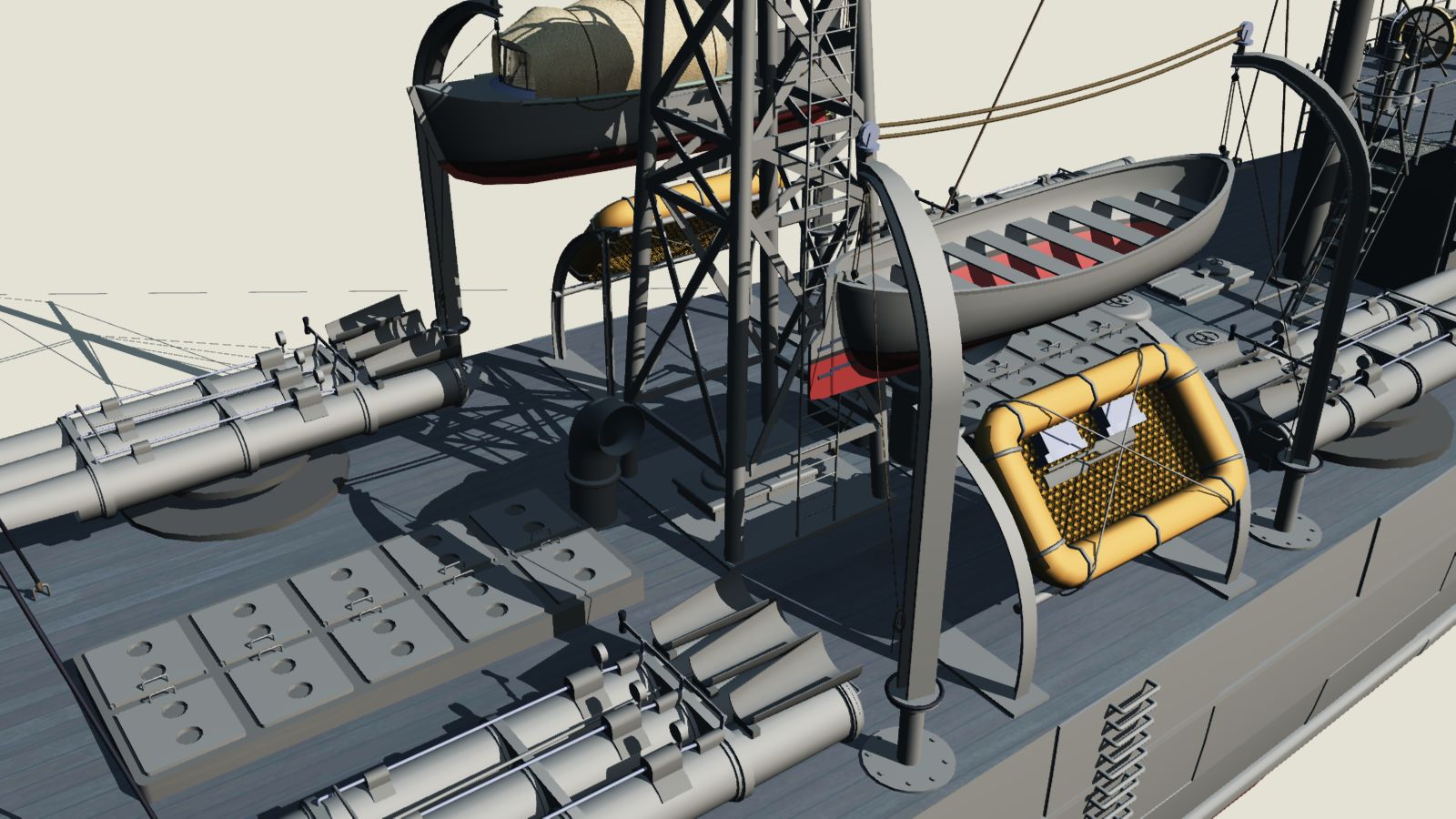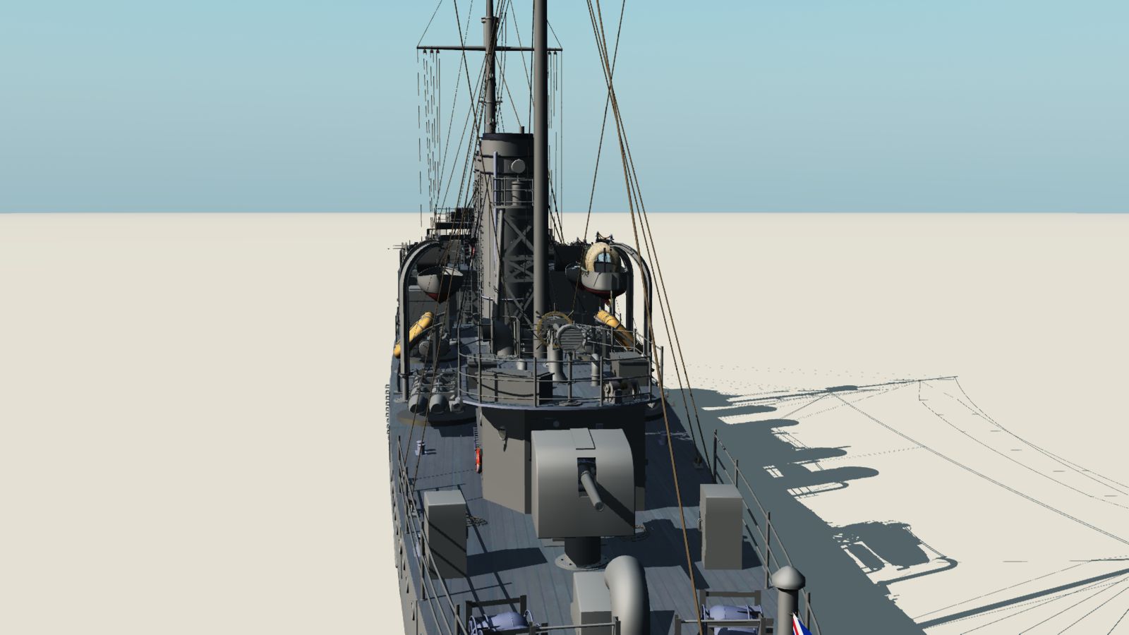Auch das Wasser ist prima - nur am Heck scheint eine sehr tiefe Rinne (?). Ein paar Besatzungmitglieder an Deck gäben dem Ganzen den letzten Schliff ... !?