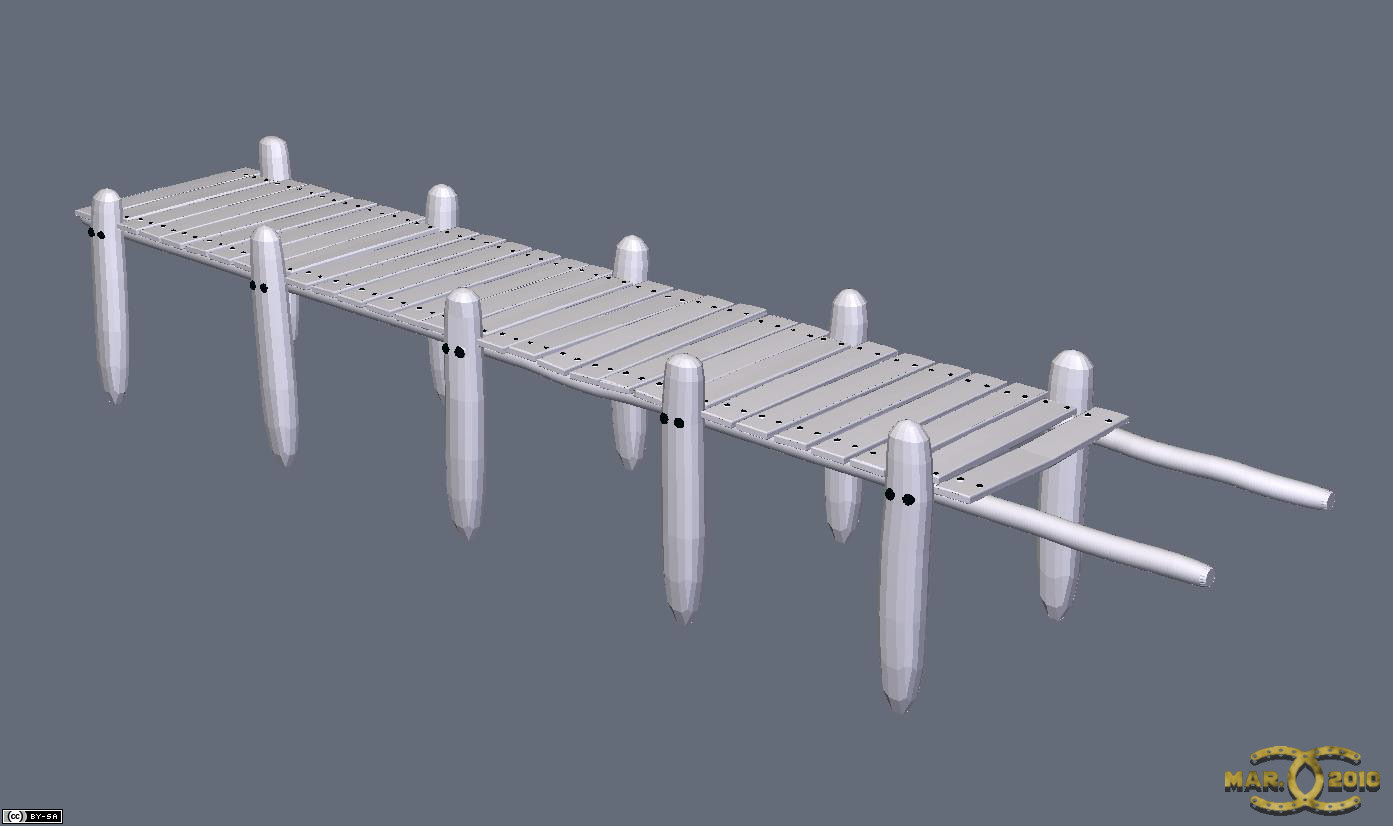 Die dicken Bolzen der Bohlen und Pfähle habe ich schonmal mit Shading-Domains versehen, der Rest wird dann später texturiert.