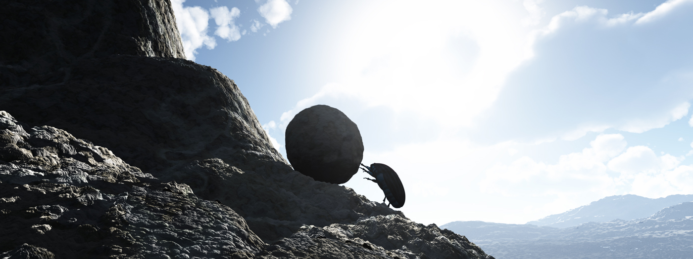 Woher willst Du wissen, daß er arm ist? Vielleicht will er ja die Mistkugel von oben auf nen anderen Käfer fallenlassen....