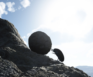 Woher willst Du wissen, daß er arm ist? Vielleicht will er ja die Mistkugel von oben auf nen anderen Käfer fallenlassen....