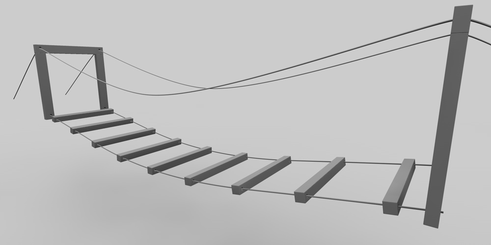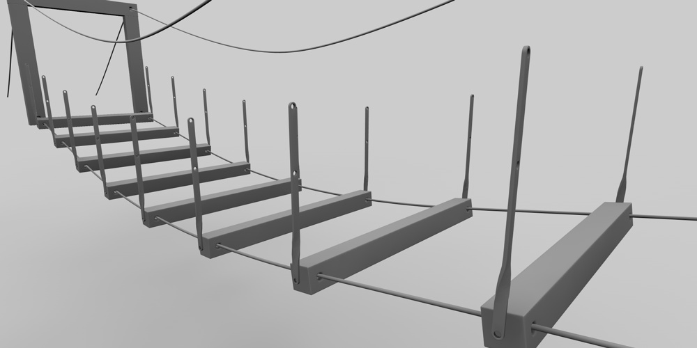 Bei dieser Hängebrücke werde ich versuchen, die Fehler der ersten zu vermeiden und außerdem deutlich weniger als 16 Milliarden Polygone zu verbauen.
