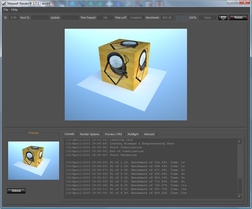 zunächst solltest du wirklich Maxwell updaten, den Link zur Download-Area müsstest du von nextlimit erhalten haben, kann ihn die aber auch jederzeit neu anfordern. Ich glaube die letzte Version von 1.x war 1.7.1 zumindest war das die letzte, die ich von nextlimit vor V2 (für die es irgendwann auch noch ein Review gibt...) erhalten habe. Dazu passend dann das entsprechende Plugin für C4D installieren.