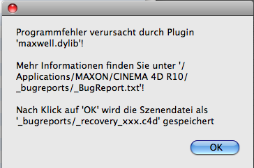 zunächst solltest du wirklich Maxwell updaten, den Link zur Download-Area müsstest du von nextlimit erhalten haben, kann ihn die aber auch jederzeit neu anfordern. Ich glaube die letzte Version von 1.x war 1.7.1 zumindest war das die letzte, die ich von nextlimit vor V2 (für die es irgendwann auch noch ein Review gibt...) erhalten habe. Dazu passend dann das entsprechende Plugin für C4D installieren.