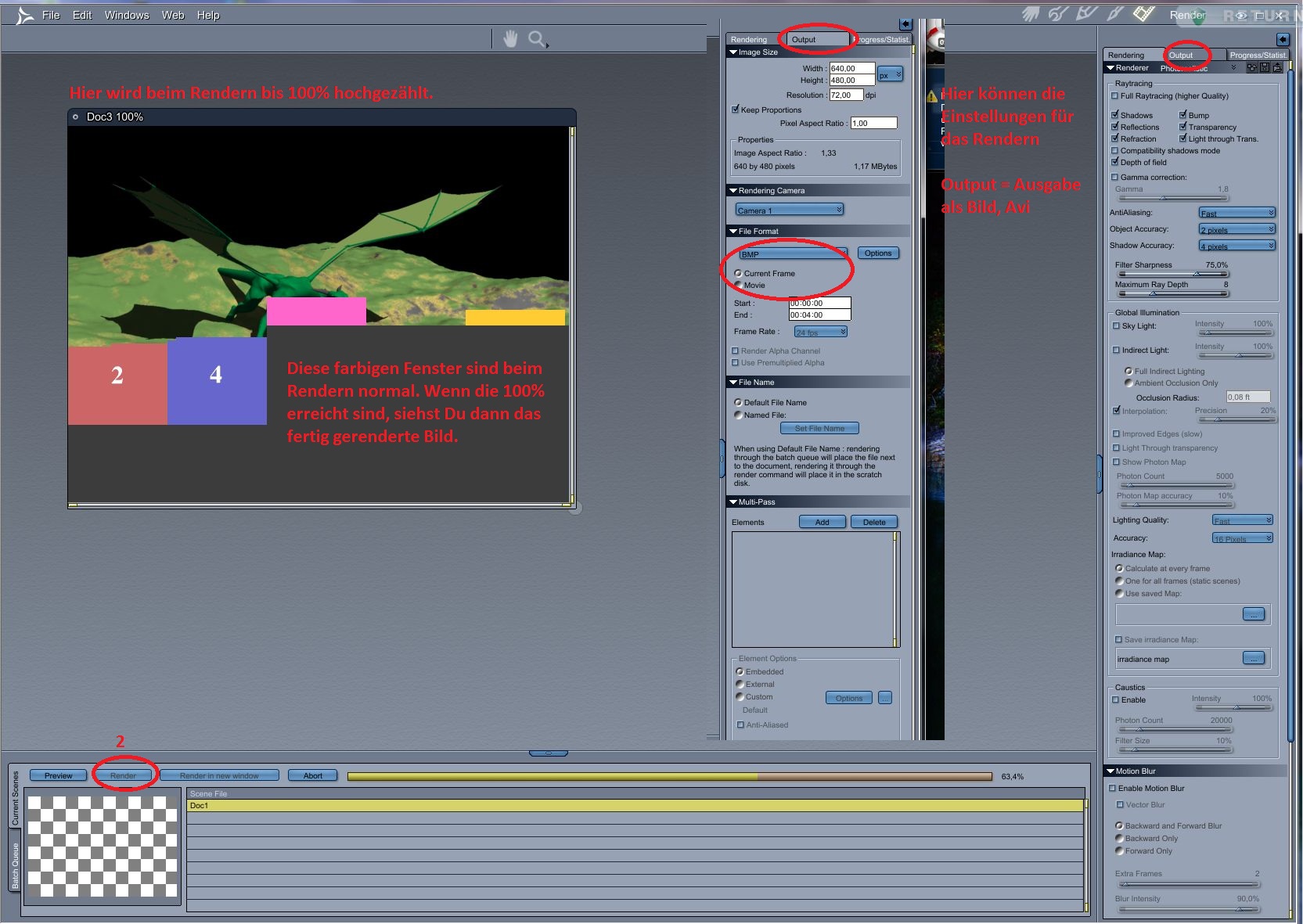 Nach dem ich den Sreen hoch geladen hatte und hier eingefügt hatte, war er am rendern.