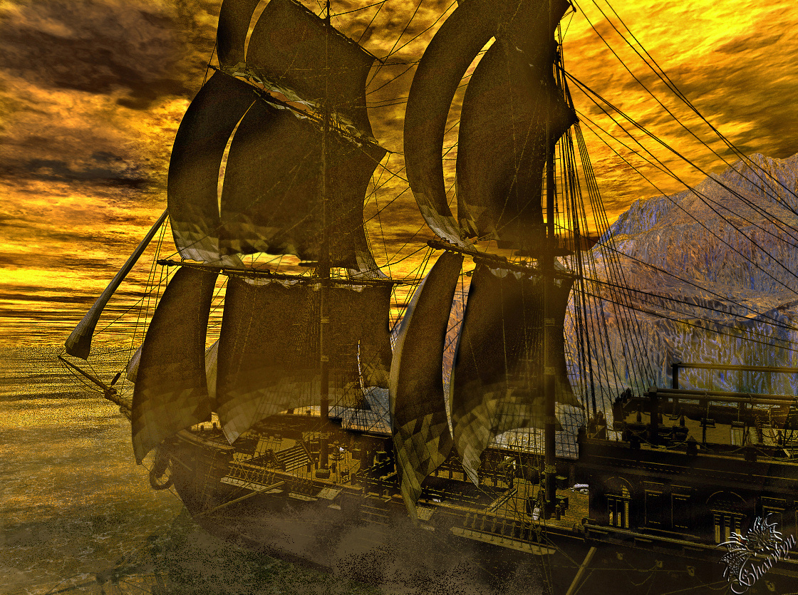 Bis auf das bereits gesagte, sieht man bei den Segeln auch die Polies, also wenn das Schiff von dir ist, dann noch einmal mit Smoothing nur über die Segel drüber.