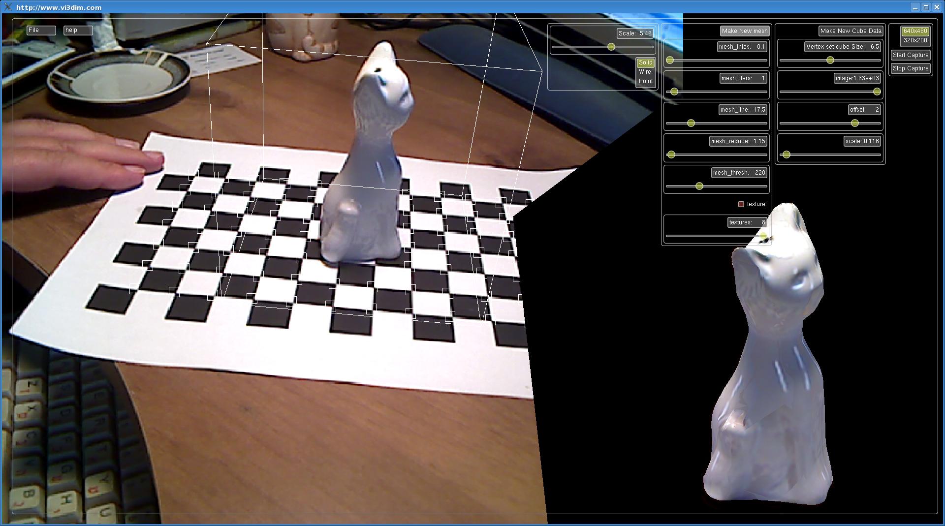 Es nennt sich Vi3DiM und ist ein 3d Scanner für den man nur eine Webcam benötigt, keinen Laser.