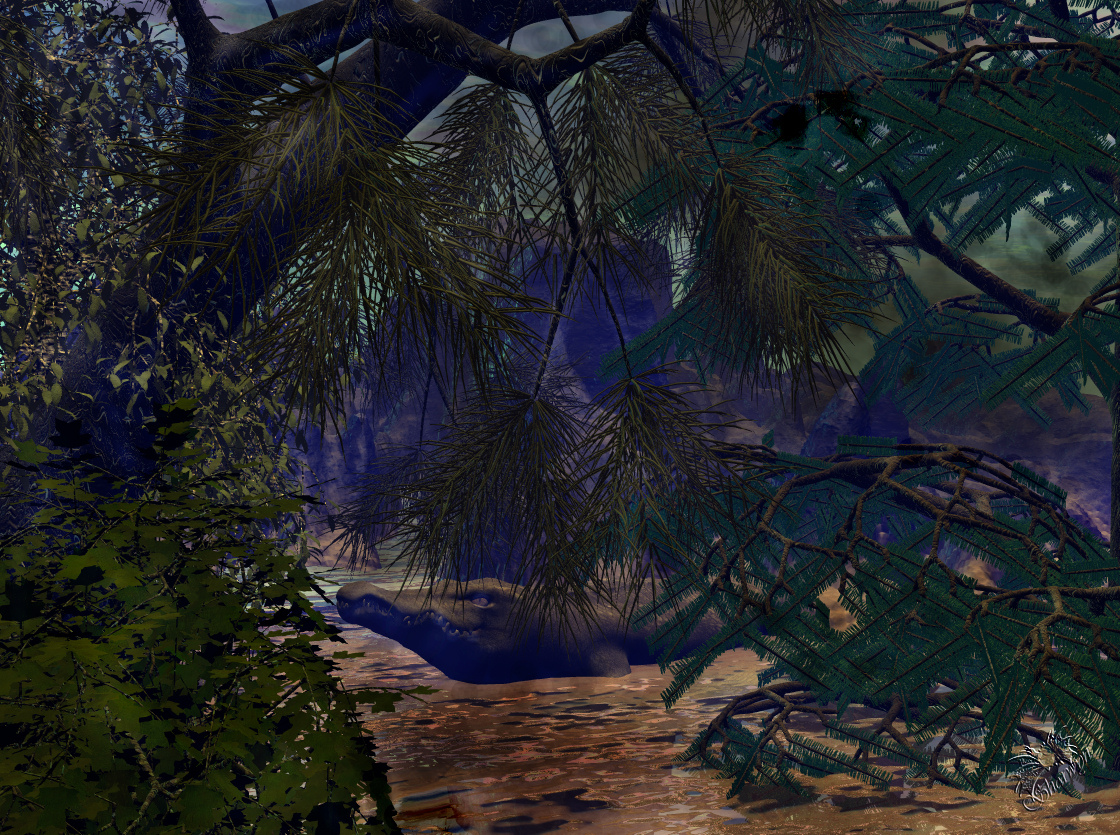 ( Im richtig echten, hinterhältigen Leben sähe man ja auch nur höchstens die Nüstern oder Augen über der Wasseroberfläche, wenn überhaupt...)