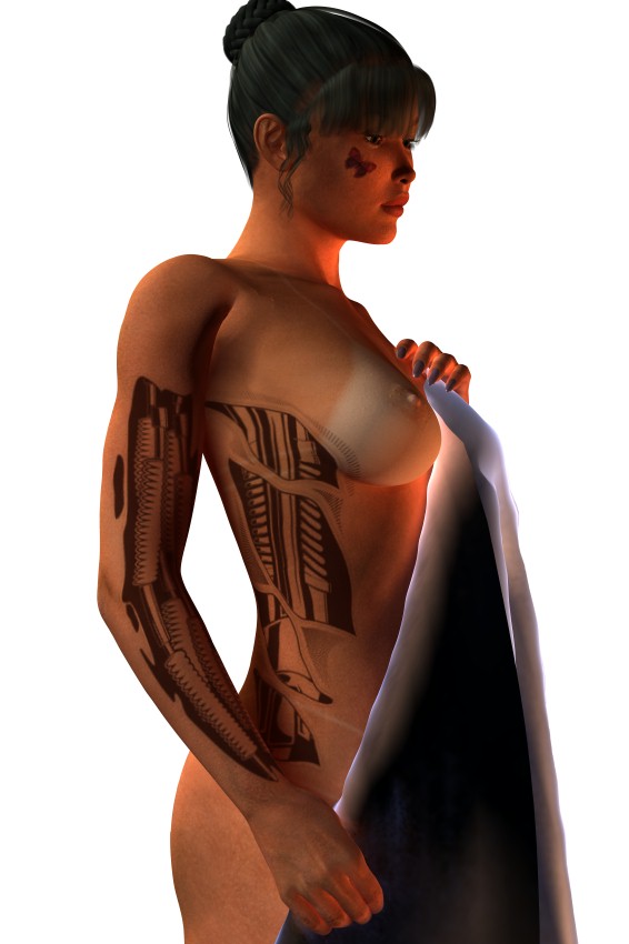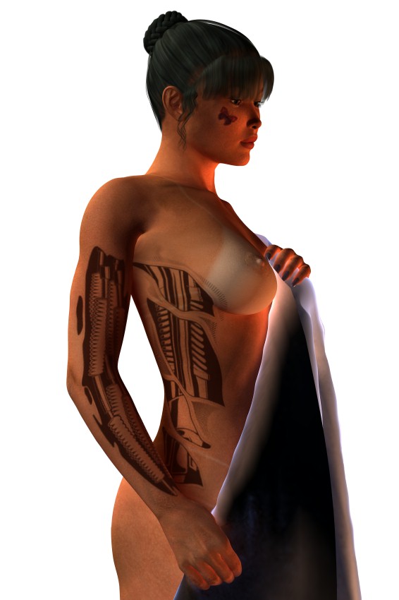 Hier habe ich nur zwei Kritiken anzubringen: Die erste ist schnell beseitigt. Die angeschnittenen Haare einfach ganz aufs Bild bringen. Die zweite: Das Poser-Achsel-Problem fällt hier sehr auf. Es soll da irgendein Plugin geben, das dieses Problem beseitigt. Ich weiß jetzt allerdings auch nicht wie das Ding heißt, sorry, hab kein Poser.
