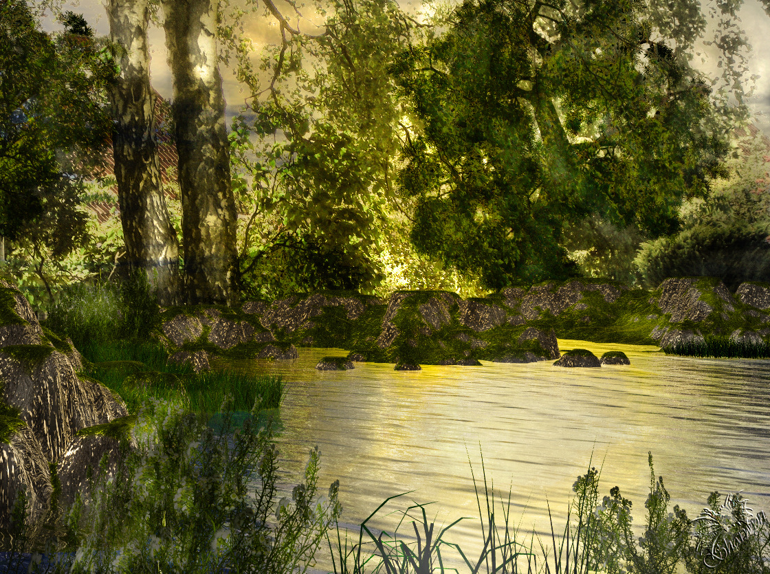 sehr schönes bild. nur ein wenig leblos - ein paar schmetterlinge in der sonne, oder ein paar vögel am ufer oder ein krokofant in lauerstellung würde dem bild etwas leben einhauchen.