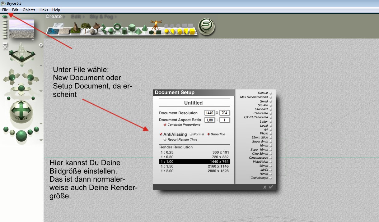 Nachtrag, jetzt habe ich zwar wieder ein Render, doch alles ist noch in Postkartengröße.