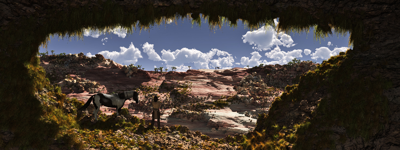 den Blickwinkel finde ich ausgesprochen gut gesetzt so aus ner Höhle heraus. Dass das Gras dazu beigetragen haben könnte glaub ich weniger, denn an Kanten hängt es ja nun mal oft auch runter. Eher die recht dunklen Schatten vielleicht - aber was soll`s.