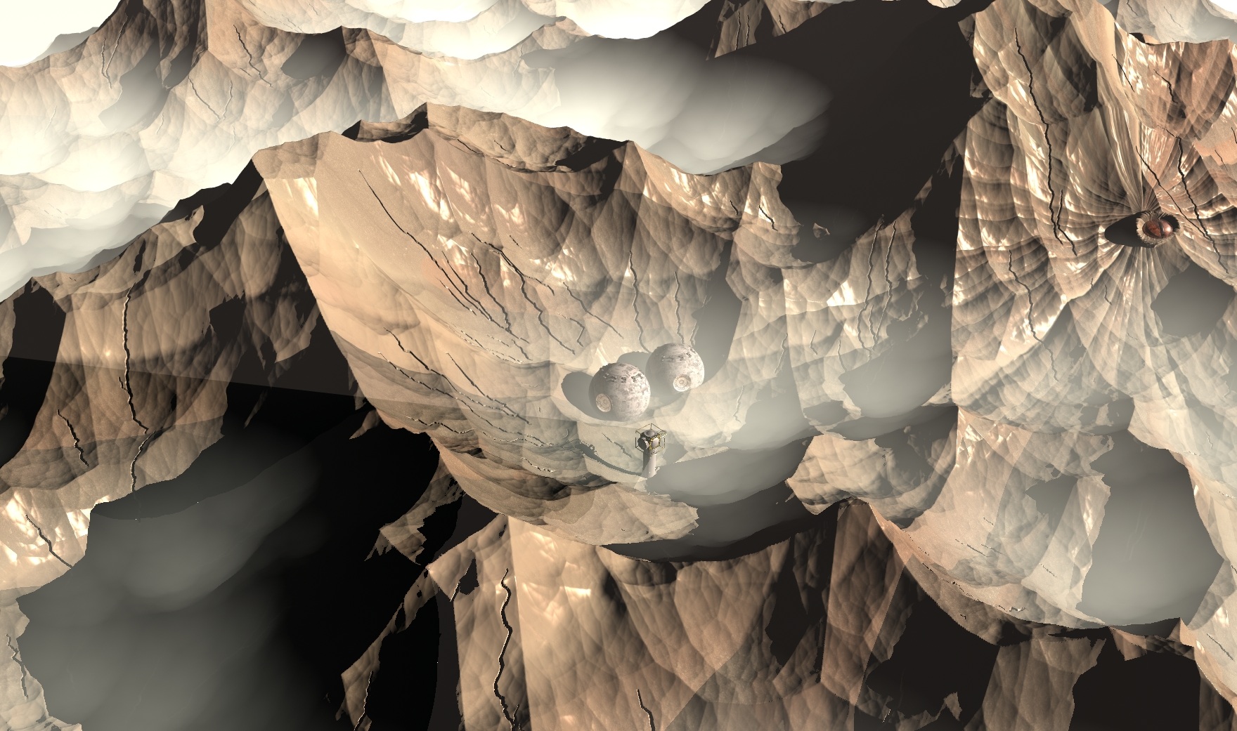 Mmmh wirklich nicht einfach sich in dieser Szene zurecht zu finden. Ich habe kurz an ein Auge gedacht, bei dem Objekt rechts. Dann würde ich sagen, die bohren gerade ein Lebewesen an und es wird gleich ungemütlich