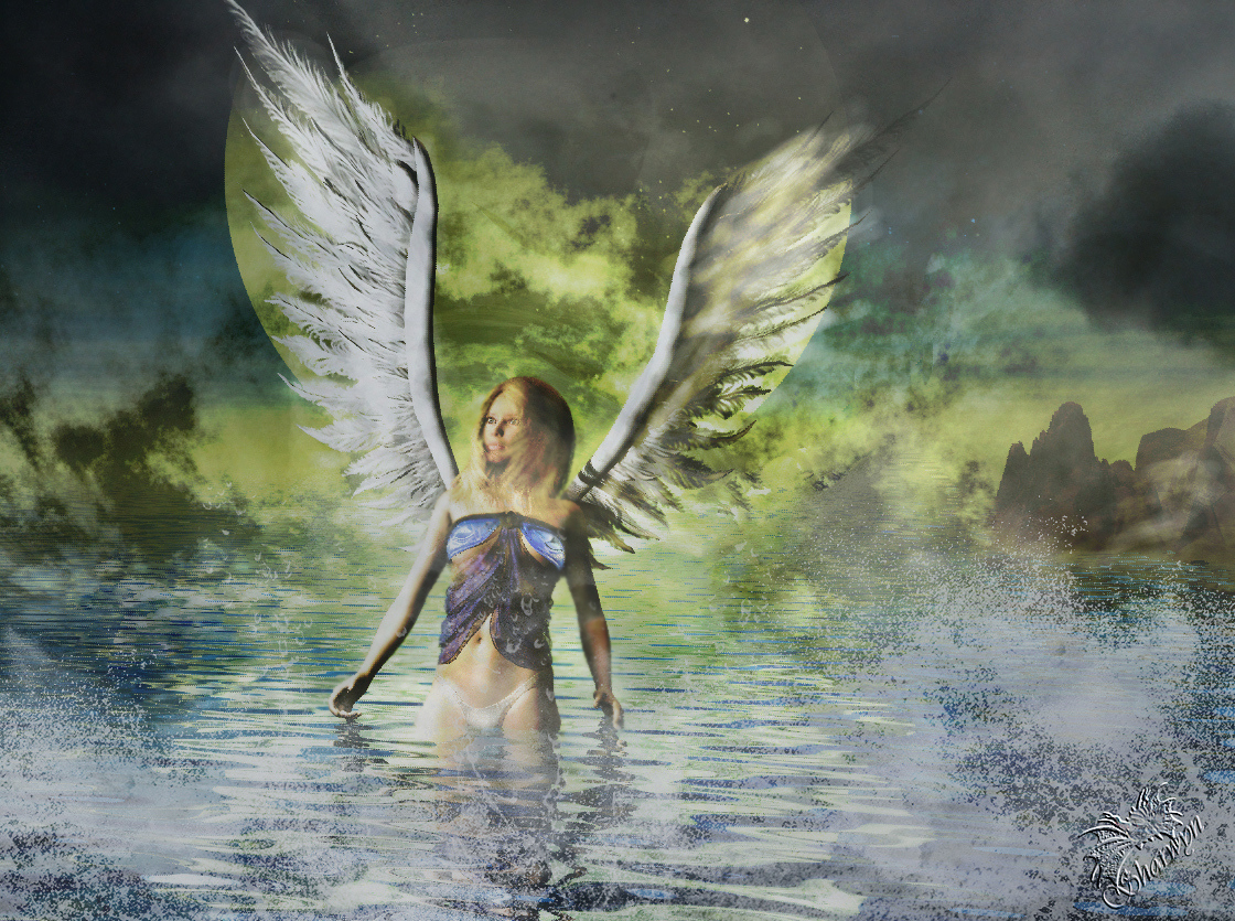 Danke für eure Kommentare , das Bild ist vollständig geglättet. Das am Arm sind evtl noch Ausläufer der PS Brushes . Figur ist 3D von Poser ins Bryce importiert .
