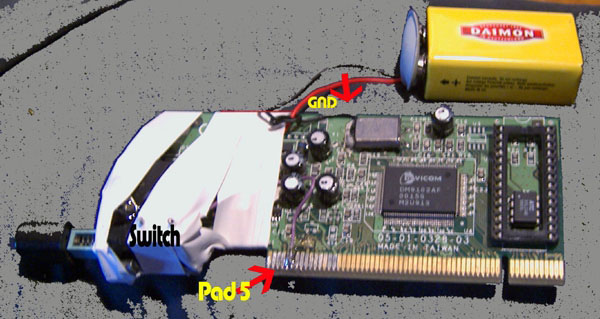 Der isses. Hier kommt der rote Draht des Batterieklipps dran.