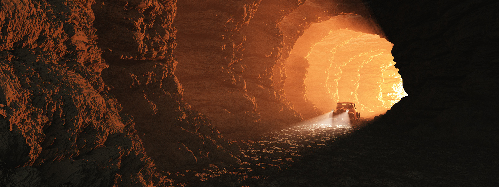 PS: Die Lichtkegel müssten zu Beginn die Fläche der Scheinwerfer haben. Feuchte Wände sind eine Gute Idee.