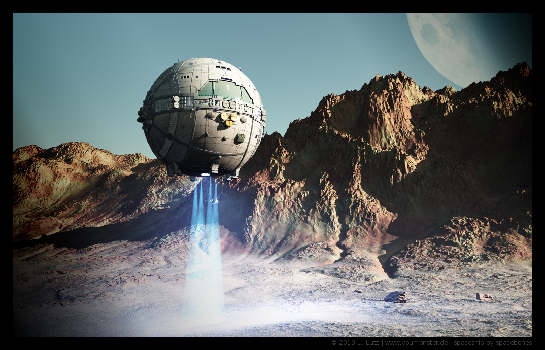 Die Triebwerksstrahlen sind gewöhnungsbedürftig, ansonsten schönes SciFi-Pic