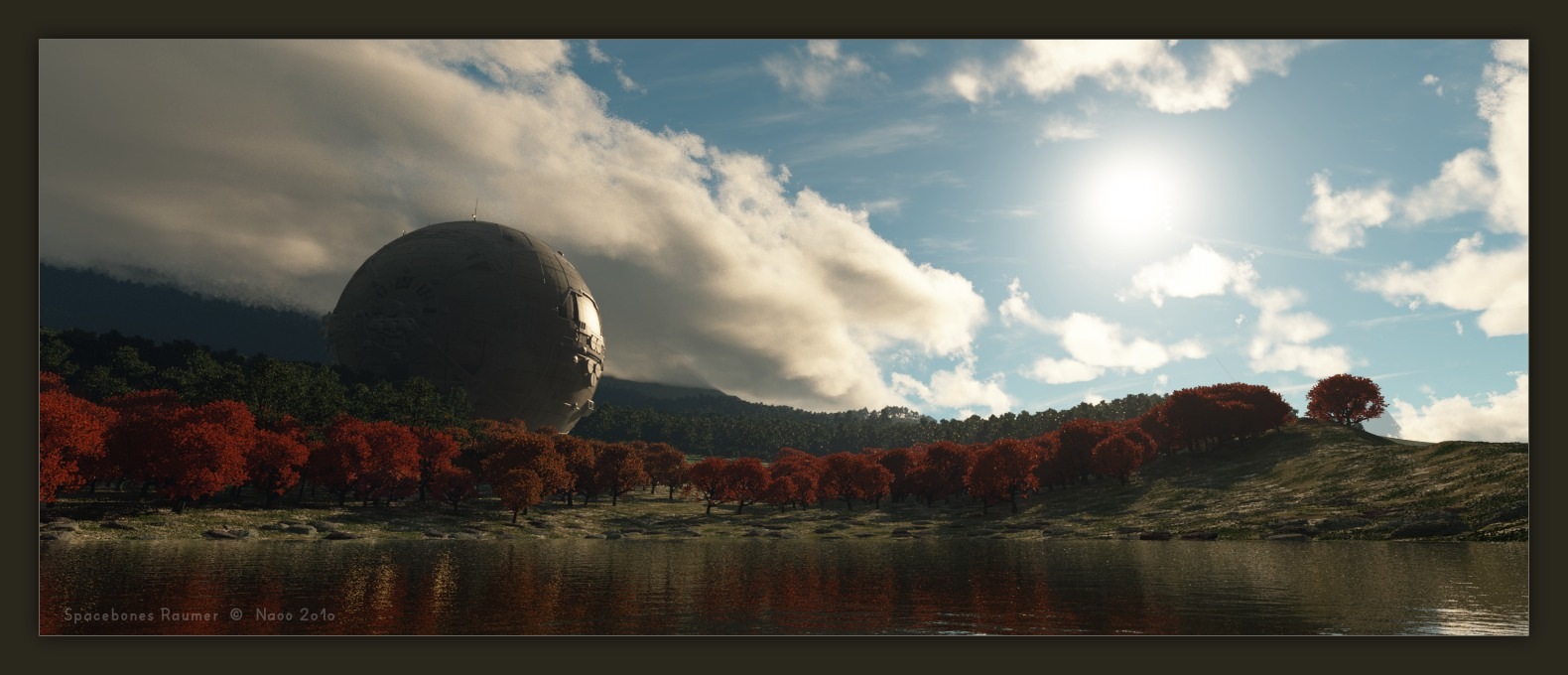 Ein Terragen-Bild mit Spacebones Mehrzweckraumer.