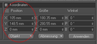 Dann per Koordinatenmanager das Objekt in den Nullpunkt platzieren.