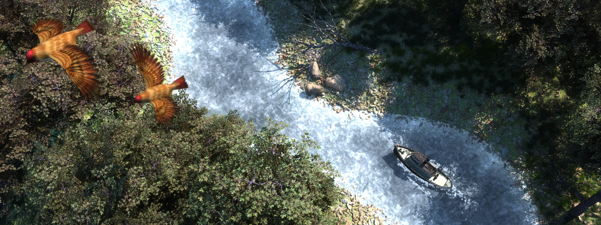 passt aber gut zum Modellbaucharakter der Szene (Steine und Blätter groß, Schiff und Fluss klein).