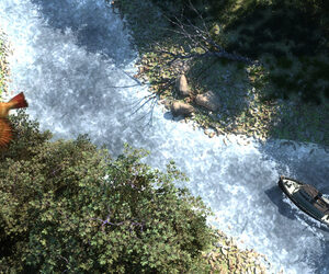 passt aber gut zum Modellbaucharakter der Szene (Steine und Blätter groß, Schiff und Fluss klein).