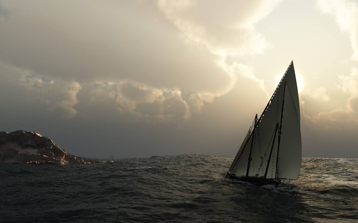 Für die Segel ein Tipp: Im Materialeditor gibt es irgendwo die Option "Backlight". Das verwendet man für dünne Objekte, durch die starke Lichtquellen wie die Sonne ein bisschen durchscheinen, z.B. Blätter. Sieht bestimmt bei den Segeln auch gut aus ![]()