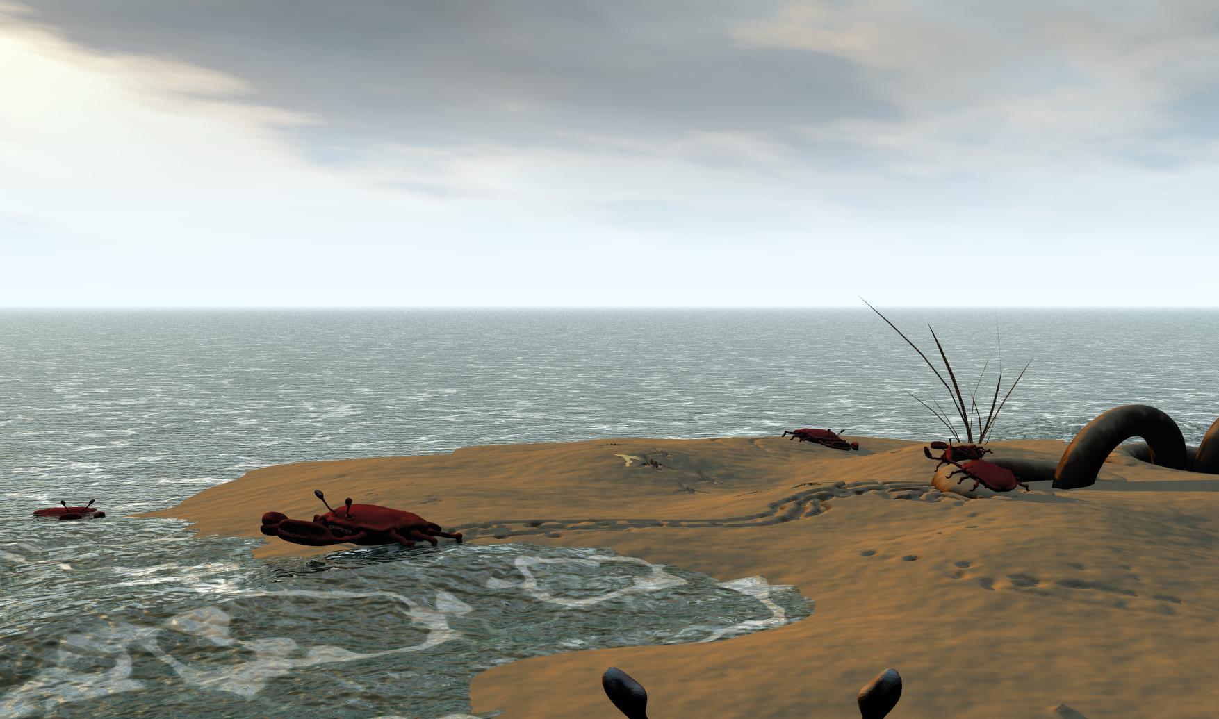 das Bild ist nur so ne Spielerei .bei dem hier angehängten sind unten ein paar Augen zu sehen, da kam dan die Ide mit dem Bild im Bild.Richtig gefallen würde mir es erst,wenn die Krabbe halb aus dem Bild herauskommen würde.Dan noch etwas Sand und ein paar Wassertropfen auf den Boden."Träumt".