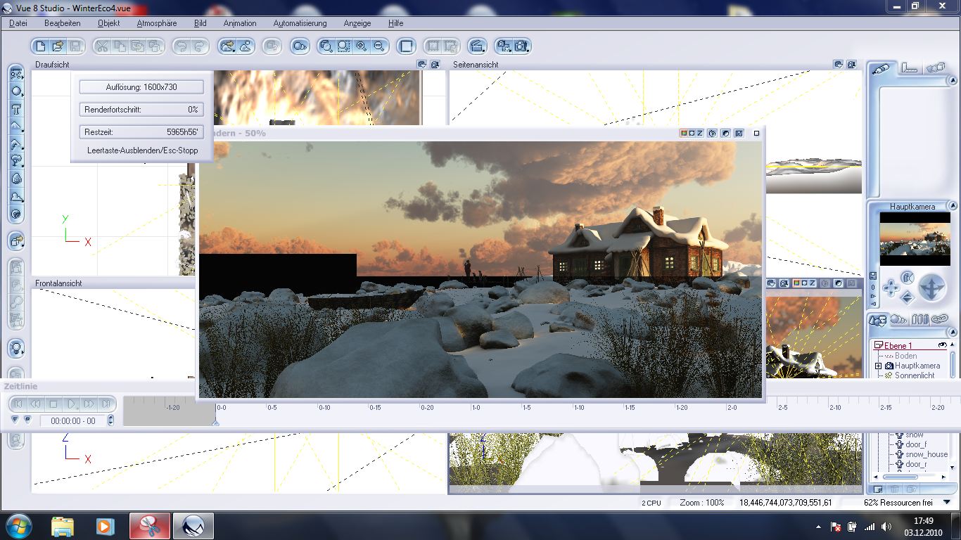 Ich habe ein Bild in Bearbeitung (Vue8Studio), was normal schon mal ca. 25 Std. an Renderzeit benötigt. Heftig genug...