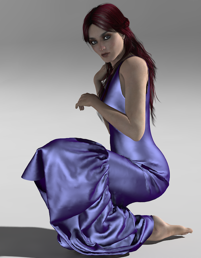 Theoretisch kann man V4 auch in Pose setzen, das Programm den Faltenwurf berechnen lassen, und dann das Ergebnis zum Rendern exportieren. Funktioniert aber nur bei einfacheren Posen, bei meinem Versuch war das Ergebnis katastrophal (die Hand ging durch den Brustkorb und beulte das Kleid von innen heraus aus).