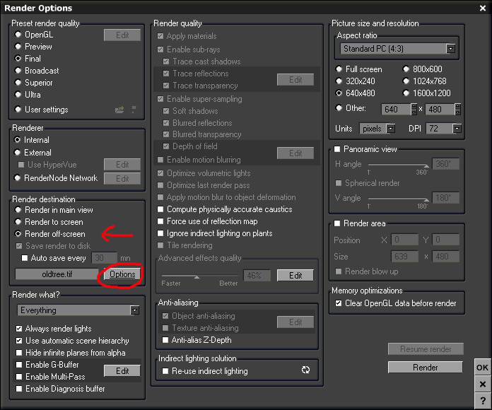 • was muss ich voreinstellen, wenn ich ein Bild beim Rendern unterbrechen will und spätrer oder nächsten Tag fertigrendern