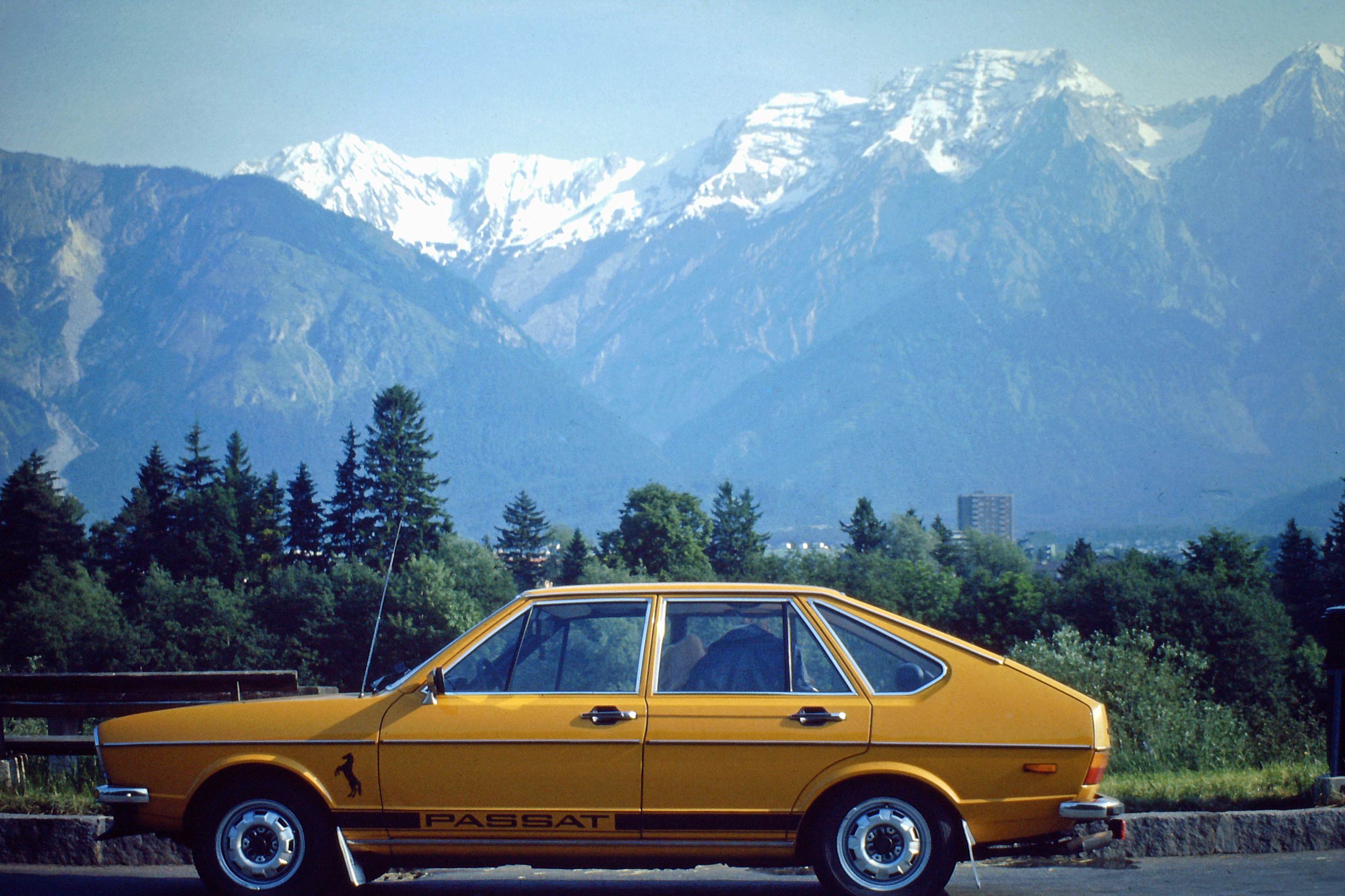 Präsentiere mein erstes Ergebnis... Mein erstes Auto: VW Passat L mit 55 Ps und Sportauspuff; irgendwo in Italien.