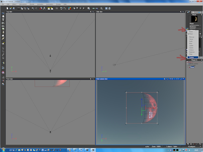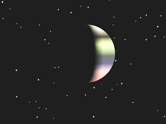 Zweite Möglichkeit ist, Dir einen Planeten einzuladen in Vue und dessen Material zu ändern. Das hat den Vorteil, dass Du wie bei anderen Planten auch die Helligkeit, die Phase und die Weichheit einstellen kannst.