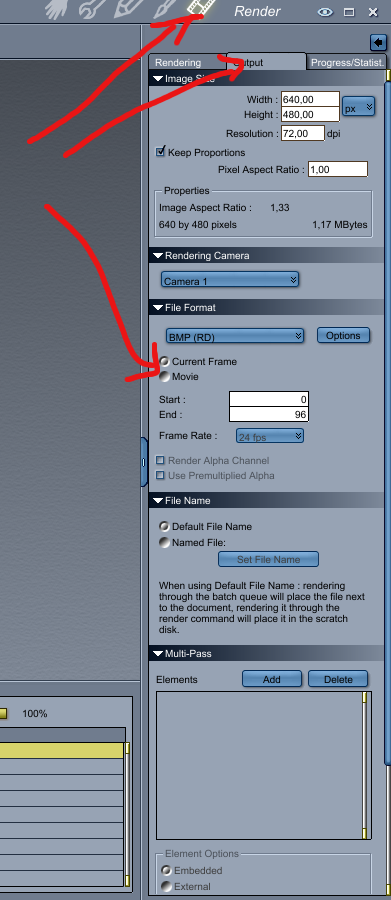 2. Beim Rendern will Carrara immer 96 Bilder machen obwohl ich nur jpg eingestellt habe und nur 1 Bild will. Anscheinend denkt C. ich will nen Film machen. Es war vorher auch auf avi gestellt. Wo schalte ich das aus? Ich finde den Schalter nicht.
