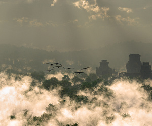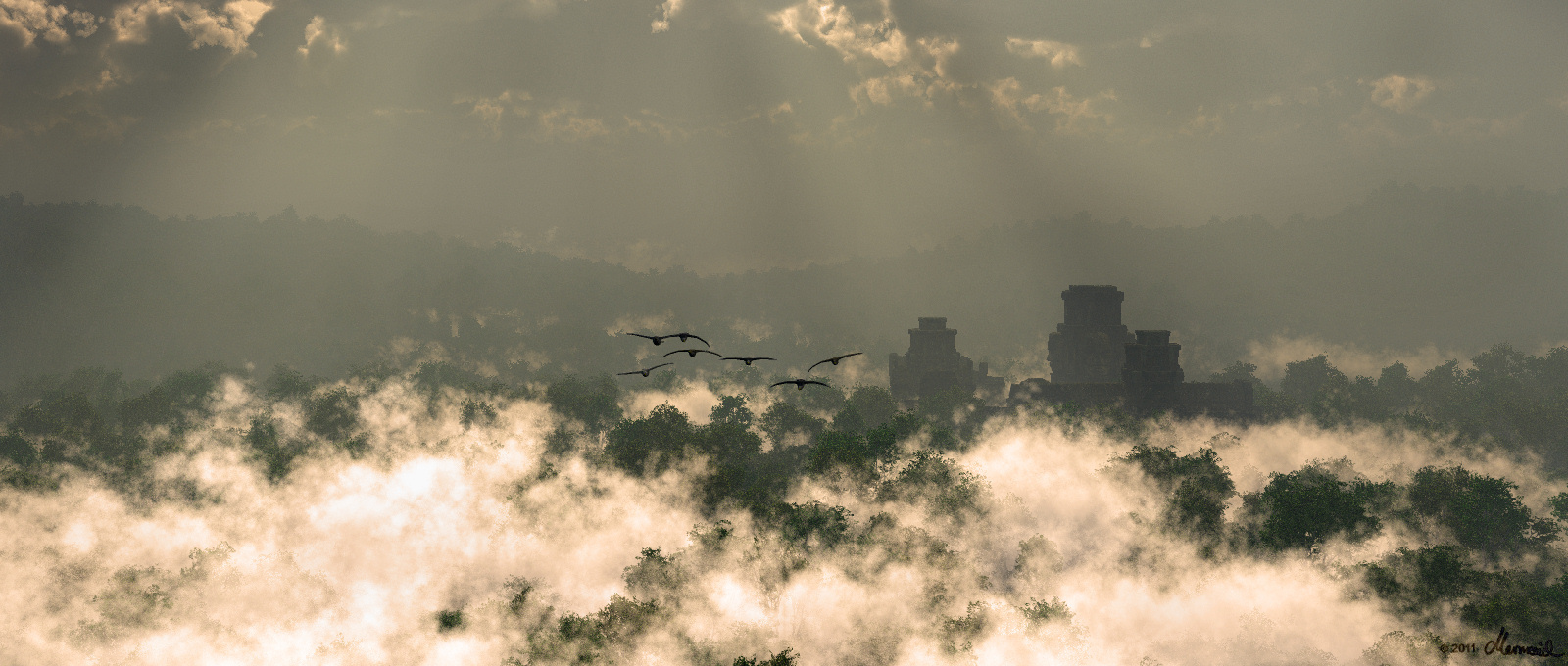 und sehr schön, wie die Wolken im Wald hängen und Tiefe schaffen.