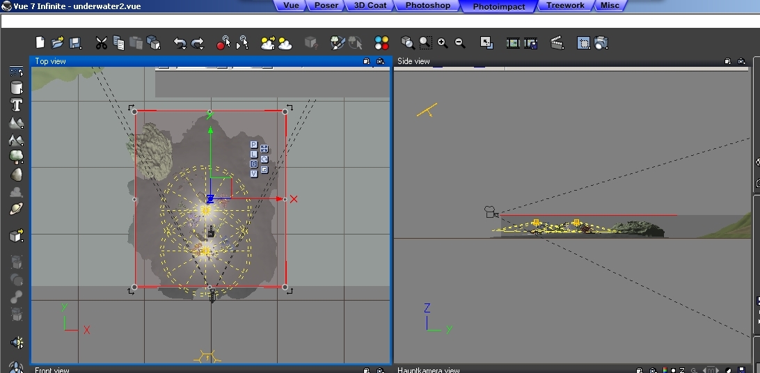 ich habe mal wieder meinen alten PC durchforstet und finde ein bestimmtes Tutorial nicht mehr. Ich meine, dass es damals von Yoro geschrieben wurde, bin aber nicht unbedingt sicher. Es ist ein Tutorial, wo man unter Wasser etwas sieht und wie durch eine Scheibe sieht man auch die Obere Hälfte, also das was über Wasser geschieht, also 2 Bilder in einem.