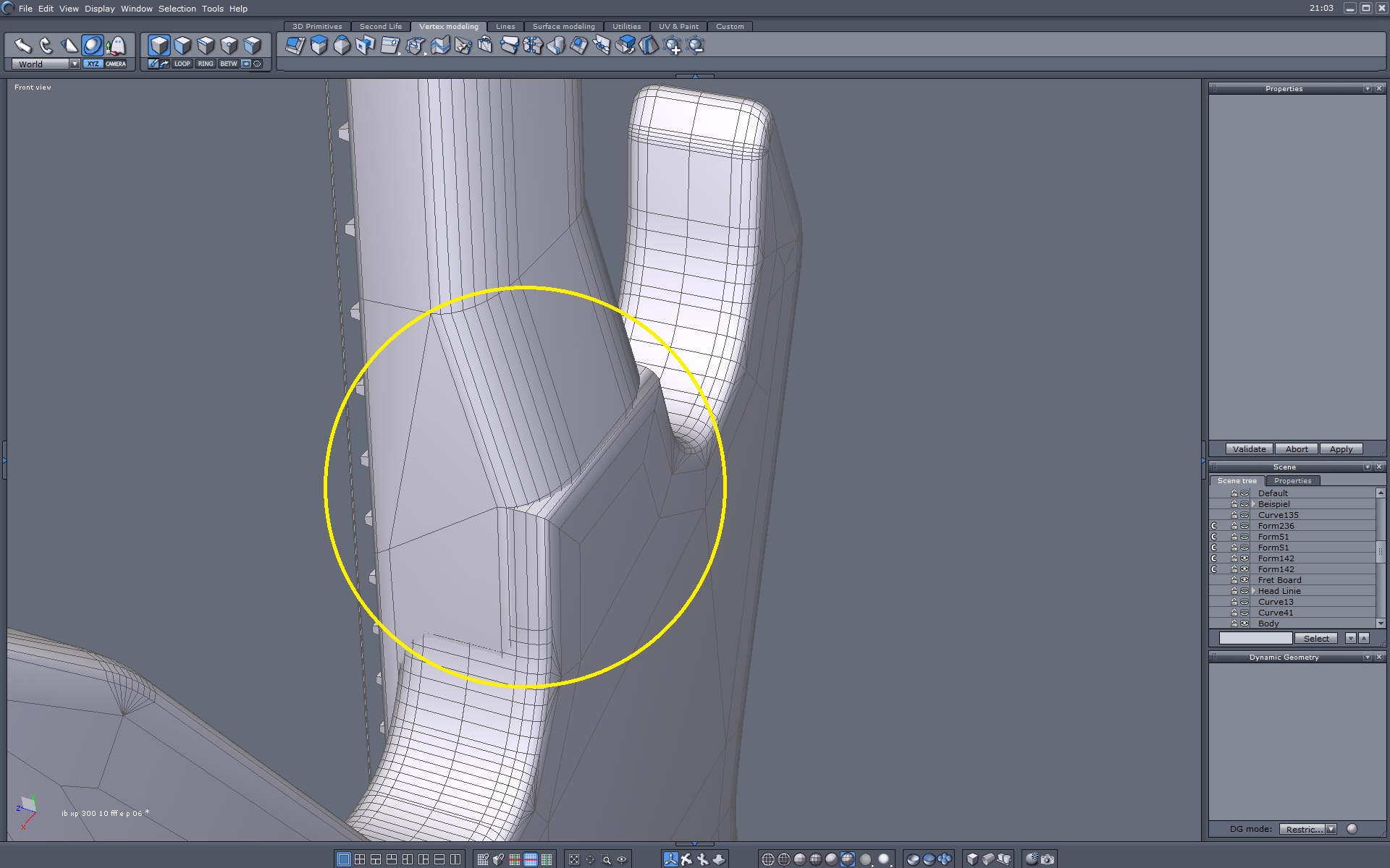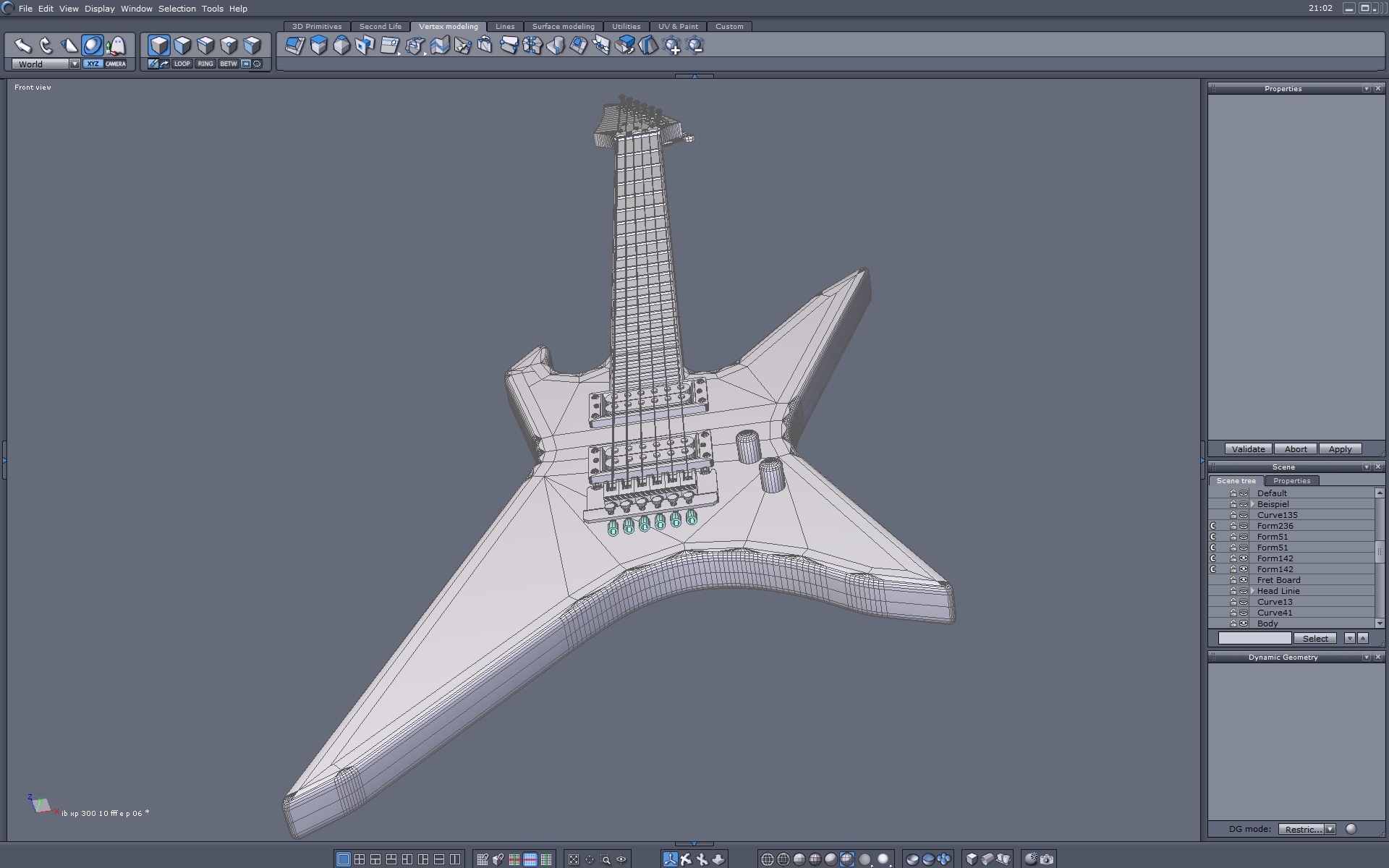 Nun gut, da es mit dem Bau aus einem Stück nicht wirklich funzte, habe ich den Body, Neck und Head separat erstellt, nur das mit den Anschlußstellen, das gefällt mir hinten und vorne noch nicht: bzw.