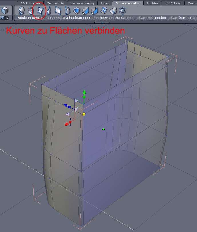 Mit Ruled Surface können eckige Kurven und gerundete Kurven zu Flächen verbunden werden. Wichtig ist hier eigentlich nur das die Kurven nicht zu unterschiedliche Knotenmengen haben. Siehe Beispielbild.