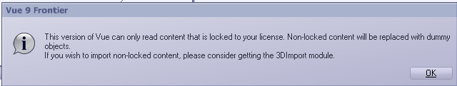 Bei DAZ haben sie mir gesagt ich könnte die Pflanzen mit der Frontier - Version nutzen. Vue sieht das anscheinend anders.