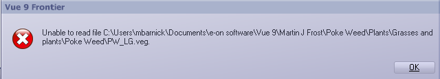 b) Vue mag fremden Content nicht. "non-locked to your licnese". Wie kann ich diese Fehlermeldungen eliminieren und meine Pflanzen in Vuel laden? (siehe Grafiken im Anhang)
